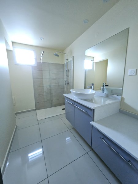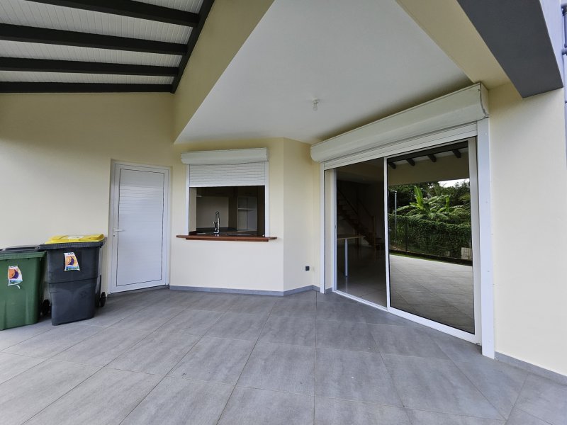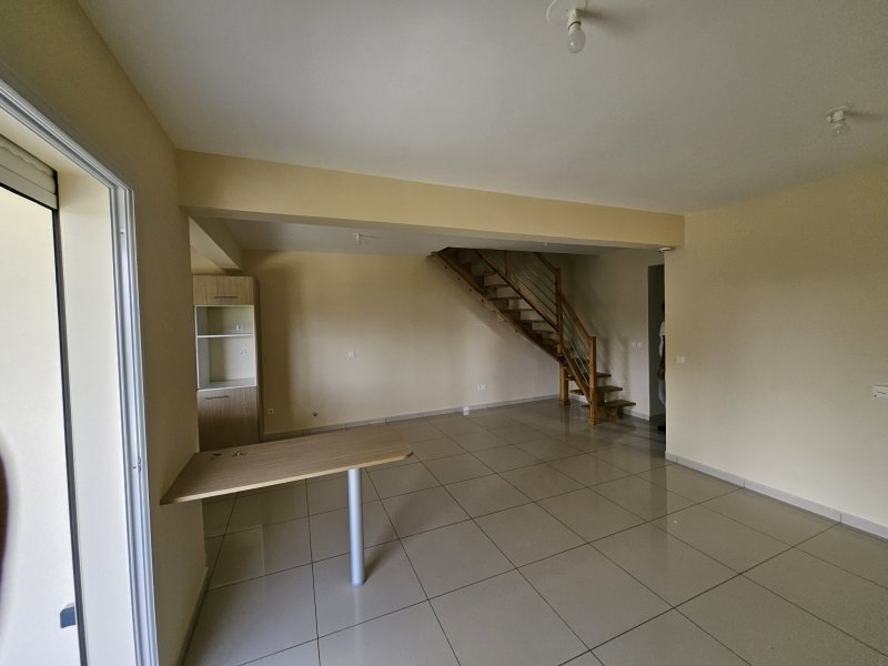 Maison F4 en duplex à louer Petit-Bourg Vue mer À louer à Petit-Bourg, dans un environnement calme avec vue mer, cette maison mitoyenne de type F4 en duplex offre un cadre de vie agréable et fonctionnel, idéal pour une famille ou un couple à la recherche de confort. Au rez-de-chaussée, le logement se compose d'une entrée, d'une chambre climatisée avec placards, d'une salle d'eau avec WC, d'un salon, d'une cuisine aménagée et d'une terrasse véranda avec buanderie donnant accès à un jardinet clôturé. À l'étage, l'espace nuit comprend deux chambres climatisées, dont une avec placards, une salle d'eau, un WC indépendant et un dégagement. Le bien dispose également d'une citerne de 750 litres, apportant un confort supplémentaire au quotidien. Cette maison bénéficie d'une belle luminosité et d'un environnement agréable, à proximité des commodités de Petit-Bourg. Les informations sur les risques auxquels ce bien est exposé sont disponibles sur le site Géorisques : www.georisques.gouv.fr.