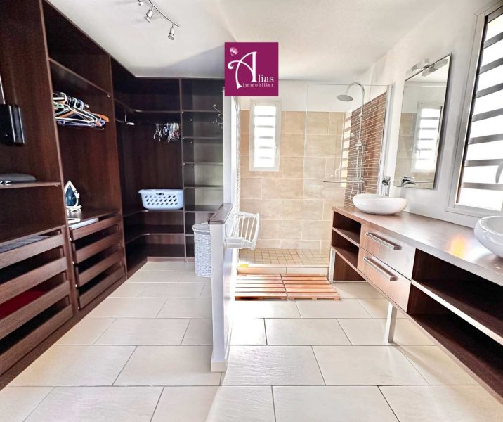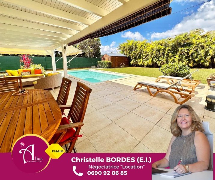 Dans le secteur de SAINT-ALBAN, dans une petite impasse résidentielle calme au bon voisinage, une charmante villa comme on les aime en Guadeloupe mariant parfaitement l'architecture traditionnelle créole et les aménagements contemporains. Elle se compose d'une partie jour avec un grand séjour de 40 m2, d'une cuisine américaine avec cellier attenant et une grande terrasse couverte équipée de strores. La partie nuit comprend une chambre principale climatisée avec salle d'eau/wc et dressing attenant, une 2ème chambre climatisée avec un placard, une 3ème chambre climatisée, une salle d'eau indépendante avec WC, et un autre WC indépendant. Le terrain de 1000 m2 est entièrement clôturé et fermé par un portail motorisé où vous pourrez rentrer au moins 2 véhicules. La piscine est au sel. L'abris de jardin en bois est suffisamment grand pour servir de débarras. Enfin le magnifique jardin fleuri et arboré possède des arbres fruitiers où vous pourrez savourer carmboles, papayes et bananes figues. Disponible début mai 2026, contactez Christelle pour visiter cette joile maison 0690 92 06 85. Entretien du jardin et de la piscine inclus. L'eau, l'électricité et internet à la charge du locataire. En GESTION LOCATIVE chez ALIAS Immobilier.