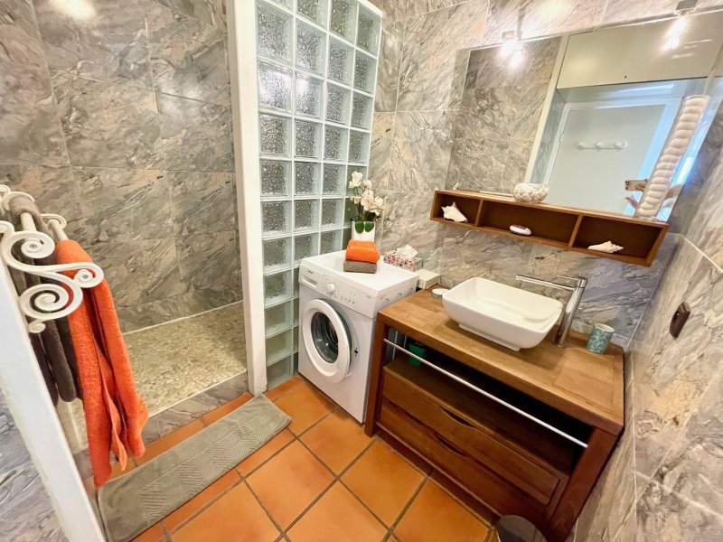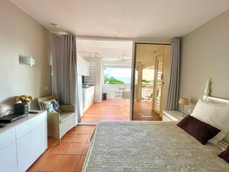 ANSE DES ROCHERS VUE MER : 1/4 de villa étage de 34 m2 (terrasse comprise) meublé, avec accès plage, piscine et tennis. Résidence sécurisée avec parking, gardien et restaurant. Emplacement proche plage et à l'abri des regards. Vue MER ET JARDIN. Composé d'une terrasse fermée par volets roulants électriques avec grande cuisine équipée, une chambre cozy climatisée avec placard, une jolie salle d'eau avec WC séparé et lave-linge. Raccordé à une citerne et internet fibre de qualité. Pour plus d'informations contacter Laurence CAILLET par WHATSAPP et SMS au +590 690 002 312 ou par SMS au 0690 35 97 18 et par mail : laurence@immo971.com et/ou cailletlo971@gmail.com en laissant vos coordonnées et l'objet de votre appel.