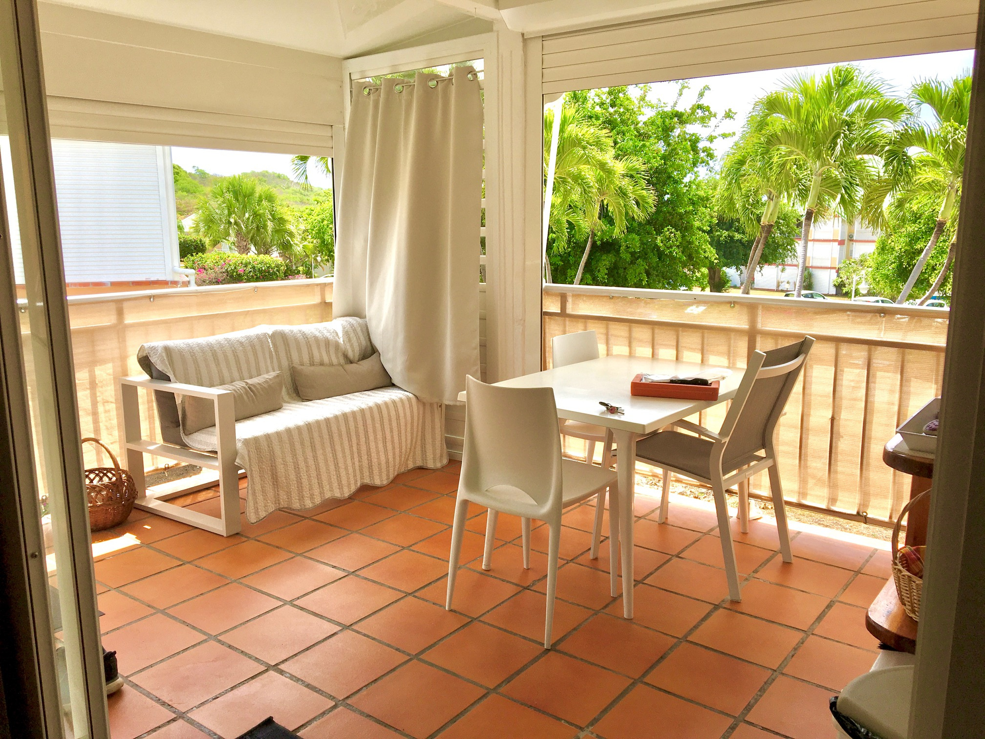 LA MARINA - Duplex T2/3 d'env. 45 m2 (avec terrasse) pleinement ouvert sur l'entrée de la Marina, il bénéficie d'une vue mer extraordinaire et d'une ventilation naturelle. Composé d'une entrée, un salon climatisé, une cuisine focntionnelle et équipée sur la grande terrasse VUE MER, une salle d'eau/WC, 1 chambre en mezzanine clmatisée avec un débarras tout en longueur. Résidence avec piscine, située à quelques encablures des restaurants, des commerces, très proche du golf et des plages. Equipé pour 4 personnes, il est vendu meublé, idéal pour y vivre à l'année ou comme pied à terre l'hiver ou encore pour générerr des revenus locatifs saisonniers, ce type de Bien est apprécié des golfeurs et des vacanciers. Pour plus d'informations contacter Laurence CAILLET par WHATSAPP et SMS au +590 690 002 312 ou par SMS au 0690 35 97 18 et par mail : laurence@immo971.com et/ou cailletlo971@gmail.com en laissant vos coordonnées et l'objet de votre appel.