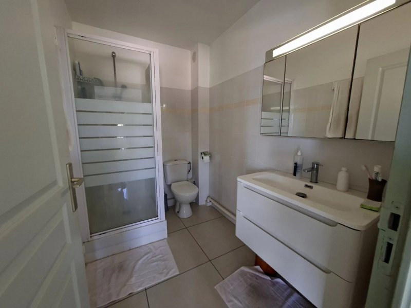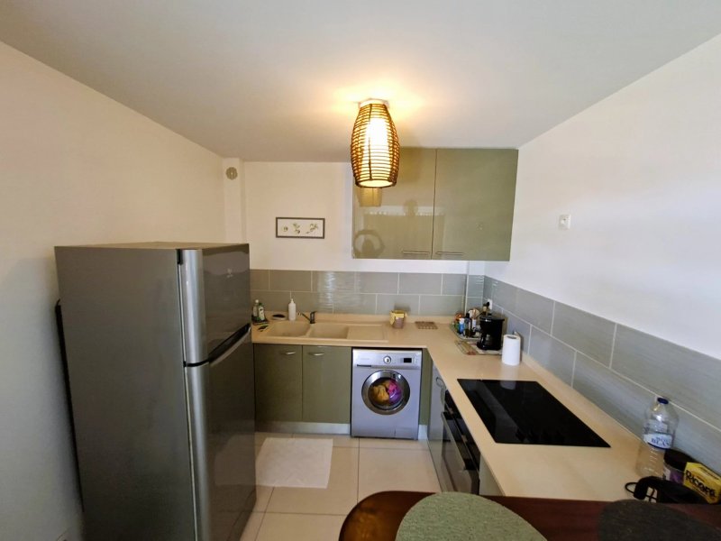Il se compose d'une belle terrasse d'environ 12 m², une salon lumineux, une cuisine aménagée ouverte, une SDD avec toilette, une grande chambre climatisée avec placards de plus de 13 m².