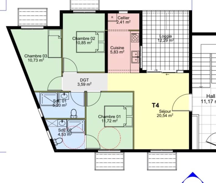 Cet appartement bien agencé propose une cuisine avec cellier, un séjour lumineux de 20 m², une salle d’eau commune, Les chambres sont aux nombre de 3 allant de 10 à 11 m2, dont une suite parentale avec salle d'eau privative. Une loggia de 12 m2 vient prolonger le séjour pour profiter d’un espace extérieur agréable.