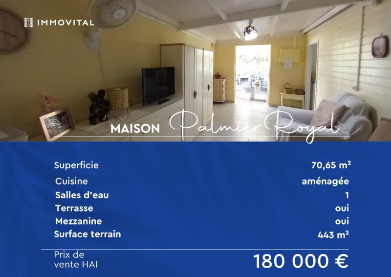 IMMOVITAL vous propose à la vente cette propriété composée de deux parcelles. Située dans un environnement calme, elle représente une belle opportunité pour un premier achat, un investissement ou un projet résidentiel. La première parcelle abrite une maison de type T2, non clôturée. Au rez-de-chaussée, elle se compose d'un séjour, d'une cuisine aménagée et équipée de meubles hauts et bas, d'une salle d'eau avec WC, de deux pièces supplémentaires permettant divers aménagements, ainsi que d'une terrasse agréable. À l'étage, une mezzanine vient compléter l'ensemble, offrant un espace supplémentaire pouvant servir de chambre, bureau ou rangement. La propriété bénéficie également d'une place de parking couverte et d'une cour arrière offrant un espace extérieur supplémentaire. Des équipements complémentaires sont en cours d'installation, notamment un chauffe-eau solaire et une citerne d'eau prochainement raccordée à la maison. La seconde parcelle correspond à un terrain nu et non clôturé, servant actuellement de chemin d'accès à la maison. Pour plus d'informations ou organiser une visite, contactez IMMOVITAL LE MOULE 0590 23 10 10. Nous sommes également présents à Jarry 0590 48 10 10 et Basse-Terre 0590 88 10 10.