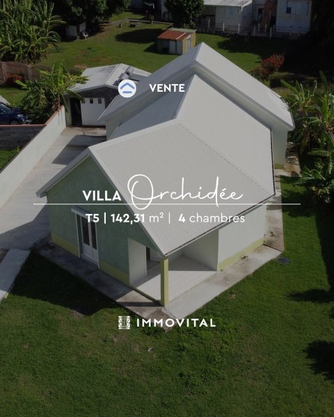 Sur la commune de Sainte-Anne, dans le quartier recherché de Richeplaine, venez découvrir avec votre agence IMMOVITAL cette villa individuelle de type T5, construite dans les années 2000. D'une surface habitable de 142,31 m2, édifiée sur un terrain plat de 592 m2, cette villa se développe sur deux niveaux et offre de beaux volumes ainsi qu'une distribution fonctionnelle des espaces. Description du bien Au niveau principal : Entrez par un spacieux hall d'entrée qui dessert les différents espaces de vie. Vous découvrirez un espace jour convivial composé d'une cuisine aménagée et équipée ouverte sur le séjour avec plan bar, idéal pour partager des moments en famille ou entre amis. Le séjour se prolonge par une petite terrasse orientée Est, agréable pour profiter de l'extérieur. L'espace nuit comprend : une chambre parentale avec salle d'eau attenante, 2 grandes chambres climatisées, une grande salle d'eau et un WC indépendant. À l'étage : Un escalier mène à la quatrième chambre, bénéficiant d'une belle hauteur sous plafond et disposant des attentes nécessaires pour l'aménagement d'une salle d'eau, offrant un beau potentiel d'évolution. Les extérieurs L'accès à la propriété se fait par une allée bétonnée (commune avec la première propriété) menant à un garage fermé par volet roulant, pouvant accueillir deux véhicules. Le terrain plat permet également de profiter d'un environnement calme et agréable, idéal pour une vie familiale. Le vendeur réalise quelques travaux, pour plus de tranquilité (installation d'un filtre à coco pour la fosse septique, motorisation du volet roulant du garage, installation de gouttières). Les atouts ? Villa individuelle ? Beaux volumes et pièces lumineuses ? 4 chambres ? Terrain plat de 592 m2 ? Garage double ? Secteur résidentiel calme Contactez-nous pour plus d'informations au 0590 23 10 10. Retrouvez vos agences IMMOVITAL sur Le Moule, Baie-Mahault et Basse-Terre.