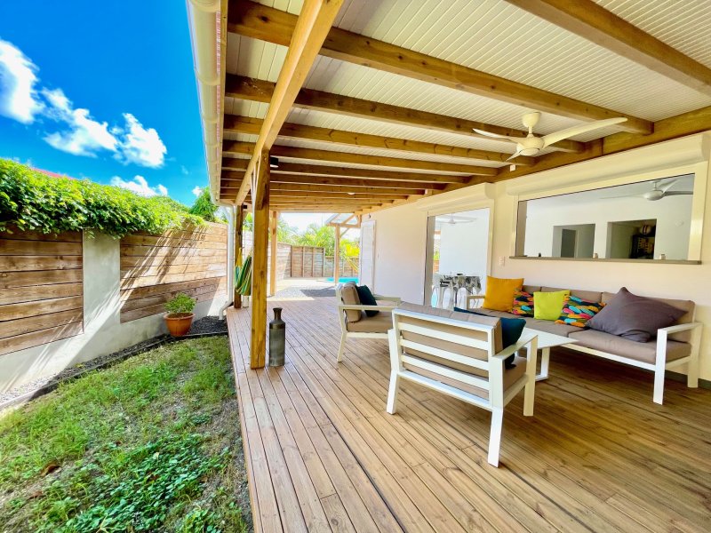 MAISON DE VILLE NEUVE F5 DE 216 m2 env. (terrasses comrises). Plage, collège, écoles, commerces et clubs sportifs accessibles à pied : maison familiale idéale pour famille avec enfants scolarisés et sportifs. Composée d'un salon avec cuisine US équipée, 1 cellier, 1 grand atelier/garage 2 roues et buanderie, 2 vastes terrasses ventilées, la chambre parentale est climatisée avec salle d'eau, 1 WC séparé, 2 chambres, 1 salle d'eau/WC, la 4ème chambre a été aménagée en studio indépendant climatisé, avec cuisine, salle d'eau/WC et terrasse. Parcelle d'env. 400 m2 clos, avec des petits jardins faciles d'entretien, 1 petite piscine, 1 local pour stocker surfs ou autres matériels, citerne, CE solaire, toiture neuve. Dsiponible de suite. Pour plus d'informations contacter Laurence CAILLET par WHATSAPP et SMS au +590 690 002 312 ou par SMS au 0690 35 97 18 et par mail : laurence@immo971.com et/ou cailletlo971@gmail.com en laissant vos coordonnées et l'objet de votre appel.