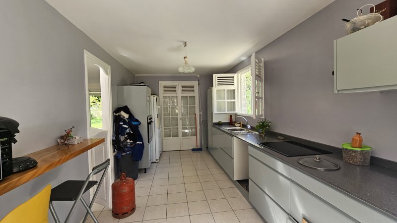 L'agence GODEFROY-MAYEUR immobilier a la plaisir de vous présenter à la vente cette jolie maison de 4 chambres sur la commune du GOSIER. Cette belle maison bâtie sur un terrain de 1000 m2 environ a une surface habitable d'environ 150 m2, avec 3 chambres au rez-de-chaussée, une grande cuisine, 2 salles d'eau, 2 WC, ainsi qu'un belle terrasse donnant sur le jardin. A l'étage, se trouve une mezzanine avec dalle béton permettant d'y aménager 1 ou 2 chambres supplémentaires, ou d'y installer un bureau/pièce bonus. L'étage est également équipée d'une salle d'eau à aménager selon vos goûts. Une terrasse ainsi que des espaces carrelés font le tour de la maison et offrent de jolis espaces de vie extérieure. A côté de la maison se trouve un deuxième batiment composé en rez de chaussée d'un garage couvert - permettant de garer 4 voitures - ainsi qu'un toillette. A l'étage, se trouve un appartement type T2 de 40 m2 environ composé d'une cuisine, une chambre séparée avec salle d'eau, un salon/séjour et une terrasse donnant sur le jardin en contrebas. Située dans un quartier calme du Gosier, à 15 minutes de Jarry, cette maison offre toutes les prestations necessaires à un bon projet immobilier que ce soit pour de l'investissement ou pour une résidence principale. Très bien entretenu, ce bien ne nécessite pas de travaux ni de raffraichissements. Vous n'avez qu'à poser vos valises ! Proposé au prix de 486.000 EUR HAI. Honoraires agence inclus charge vendeur. Pour plus d'informations, contactez-nous au 0590 26 40 79 ou par mail à l'adresse godefroy-mayeur-immobilier@gmail.com