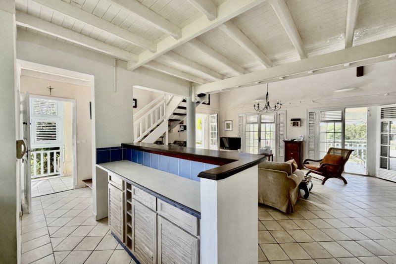 Nichée sur les hauteurs très recherchées de Poucet, cette villa d'architecte au style créole offre un cadre de vie privilégié, alliant authenticité, beaux volumes et environnement paisible. La villa s'organise autour d'un séjour lumineux, ouvert sur une cuisine américaine, favorisant une circulation fluide et conviviale. Une grande mezzanine, à aménager selon vos envies, complète les espaces de vie et offre de belles possibilités d'évolution. L'espace nuit comprend trois chambres, dont une suite parentale bénéficiant de sa terrasse privative avec vue mer, d'une salle de bain attenante et de WC. Une salle d'eau indépendante ainsi qu'un WC séparé viennent compléter cet espace. À l'extérieur, une terrasse couverte, typique de l'architecture créole, s'ouvre sur un jardin arboré offrant le potentiel pour l'aménagement d'une piscine et d'un carbet, idéal pour profiter pleinement du climat et du cadre naturel. Édifiée sur un terrain de 1 331 m2, entièrement clôturé et sécurisé par un portail électrique, la propriété dispose également d'un cabanon et d'un double garage couvert, apportant praticité au quotidien. Un bien rare avec du cachet, idéal pour une résidence principale ou secondaire, dans l'un des secteurs les plus prisés du Gosier. Pour organiser une visite, contactez Sarah DERAINE au 0690 31 31 97.
