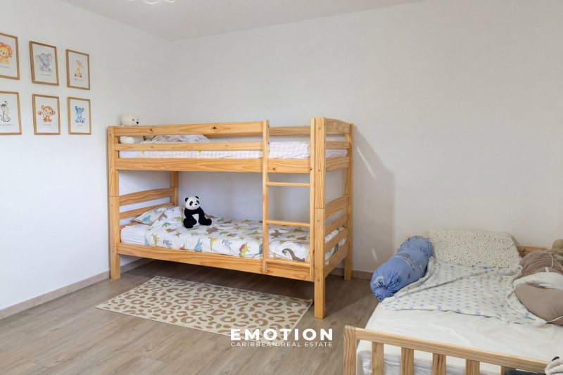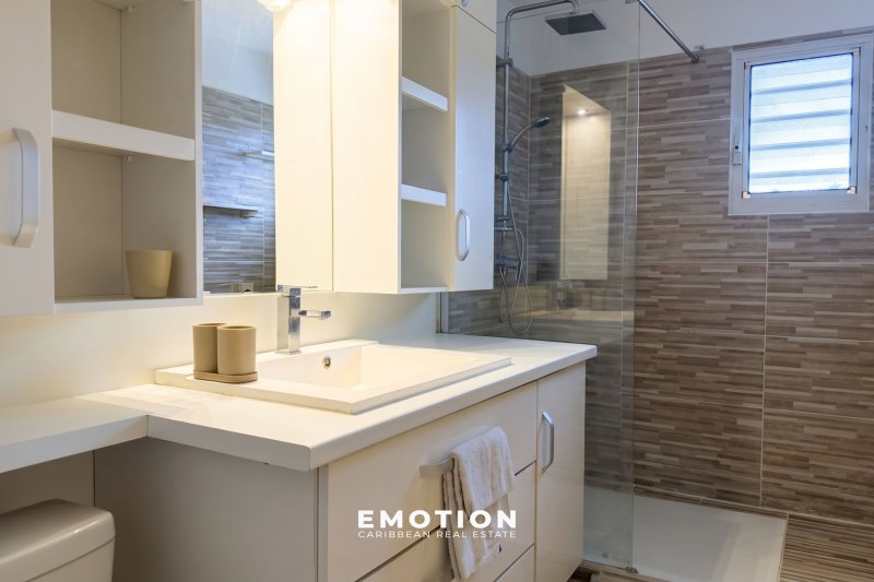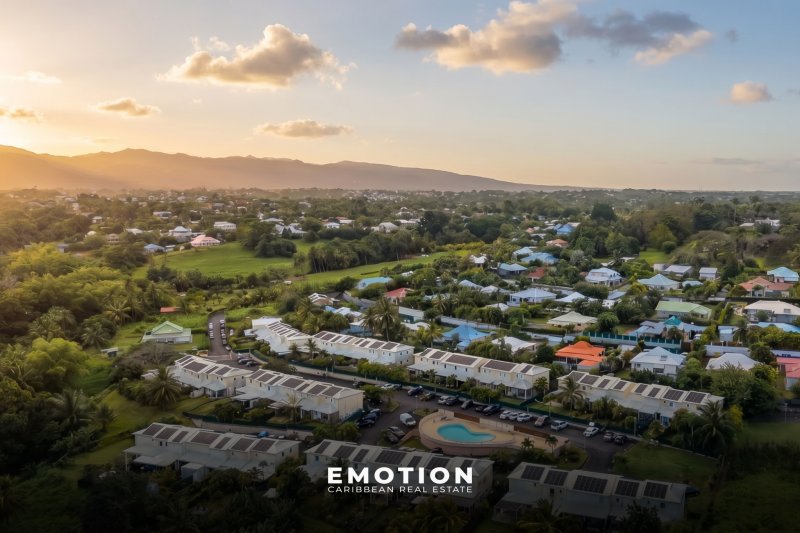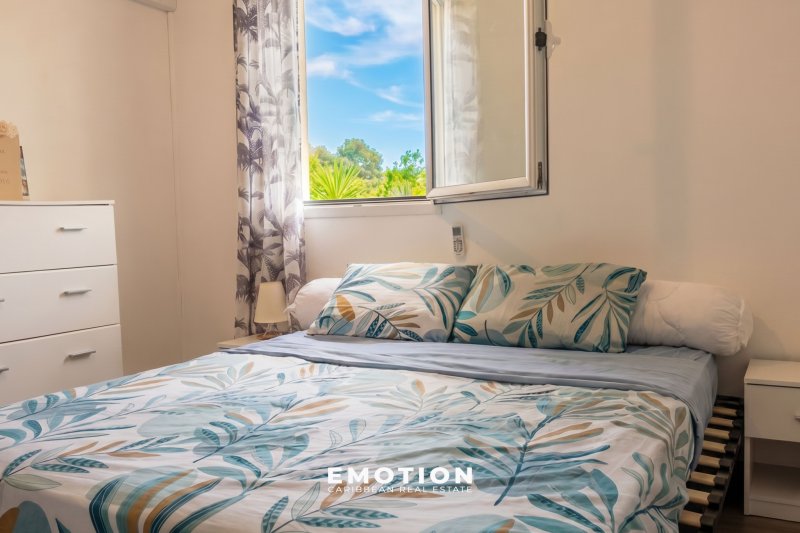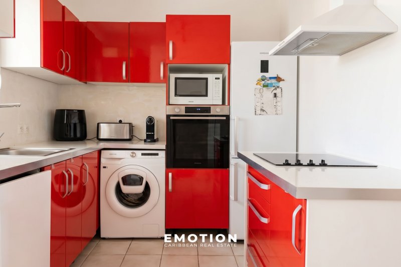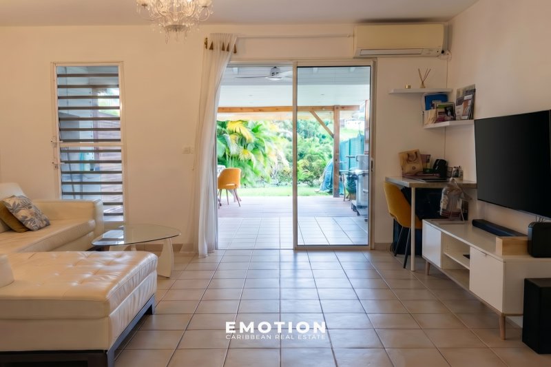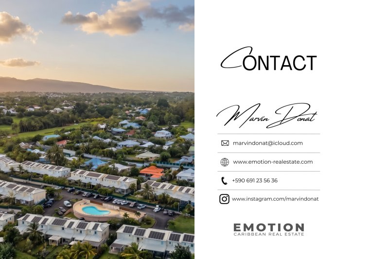 Maison Mitoyenne T3 Bis - 2 chambres + 32 m2 de terrasse + 58 m2 de jardin Baie Mahault, Guadeloupe Nouveau mandat Le cabinet Emotion vous propose un nouveau bien à la vente, une maison mitoynne chambre une charmante copropriété avec piscine & sécurisée à Baie Mahault, sur le secteur recherché de Biglette. La résidence est proche des écoles ( Pierre Mathieu ) et commerces, traiteur, boulangerie ( zone commerciale de JABRUN ). Le bien se compose au rez-de-chaussée : une entrée donnant sur une cuisine, un espace séjour lumineux & climatisée exposé sud / ouest de 20 m2, une terrasse de 32 m2 avec un brasseur d'air et un WC invité. A l'étage : Une salle d'eau avec WC et une douche, une première chambre climatisée de 15 m2 avec placard de rangement, une seconde chambre climatisée de 11,5 m2 avec placard de rangement. Le bien se compose en annexes : deux places de parking extérieures attitrées devant le logement, accès à la piscine de la résidence, résidence sécurisé Superficie totale : 96 m2 64,37 m2 Loi Carrez + 32 m2 Terrasse couverte + 58 m2 de Jardin Locataire en place : 1 322 EUR / mois ( non meublé) Charges : 111 EUR/mois Taxe foncière : 1 718 EUR DPE: E Prix FAI: 280 000EUR (honoraires charge vendeur) Informations & visites : WhatsApp ou appel au +590 691 23 56 36 Retrouvez toutes nos annonces sur Instagram : @MARVINDONAT
