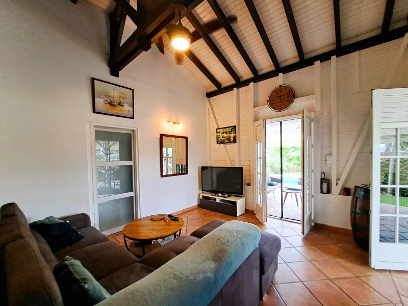 Très agréable villa de type créole en bois rouge, avec piscine et bungalow, sans vis-à-vis.