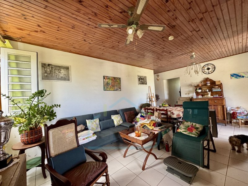 La maison dispose d'un grand terrain constructible et piscinable à l'arrière d'un peu plus de 350m2 qui est situé en hauteur par rapport à la maison. Il est possible de réaliser une construction d'un logement supplémentaire au-dessus de la maison bénéficiant de la vue sur la plage de l'Anse l'Etang.