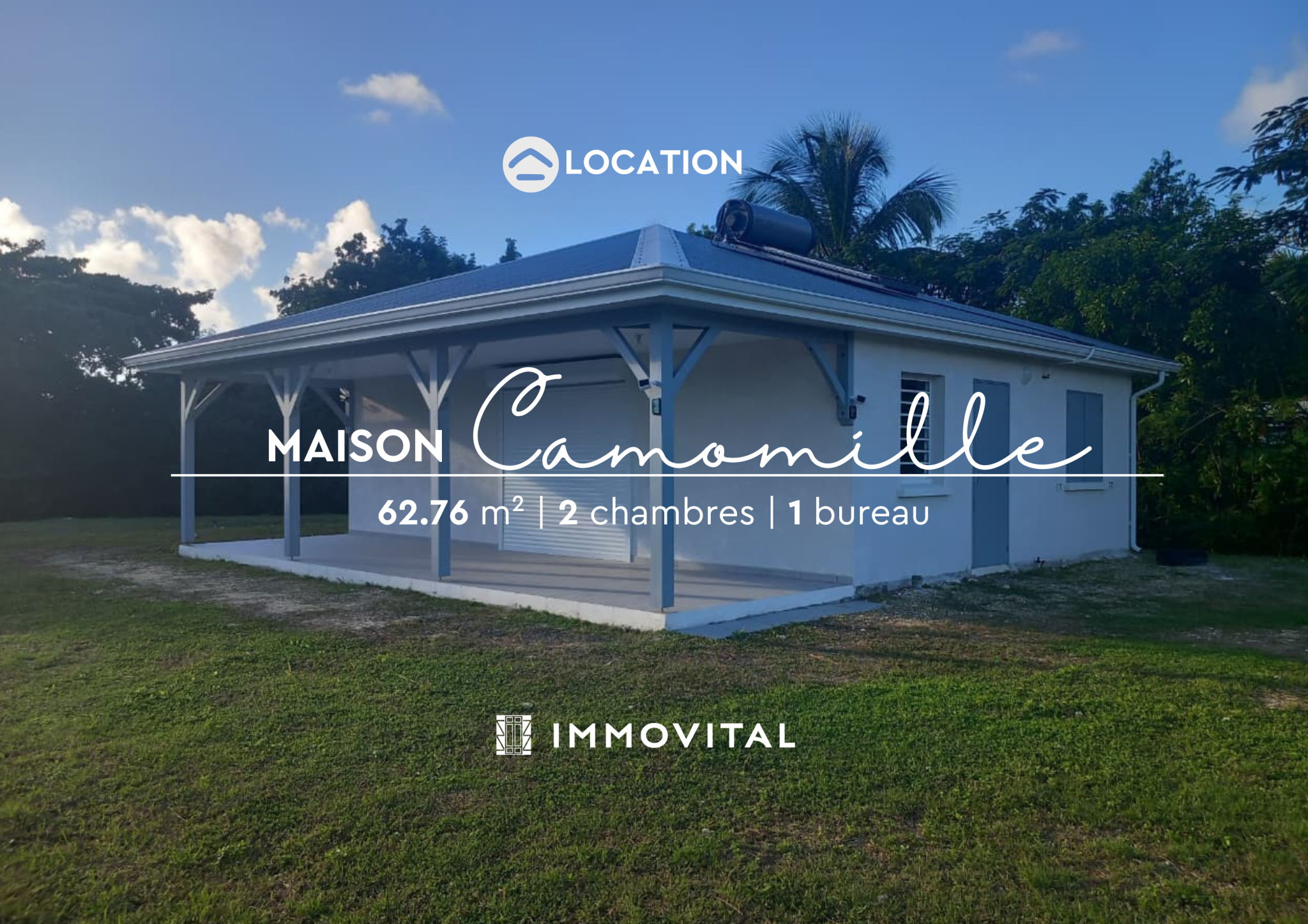 IMMOVITAL vous propose à la location cette maison T3 + 1 bureau neuve et meublée. Elle comprend un séjour avec...